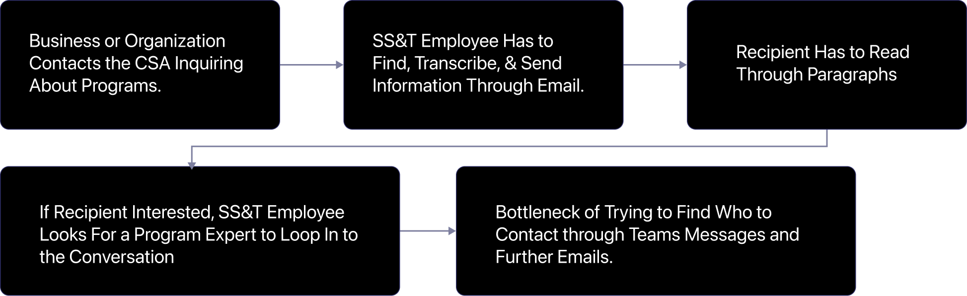 With the SS&T directorate’s primary goal being to promote and provide funding and mentorship opportunities, through discussing with employees in my team, they often found themselves faced with troubles with the following workflow.